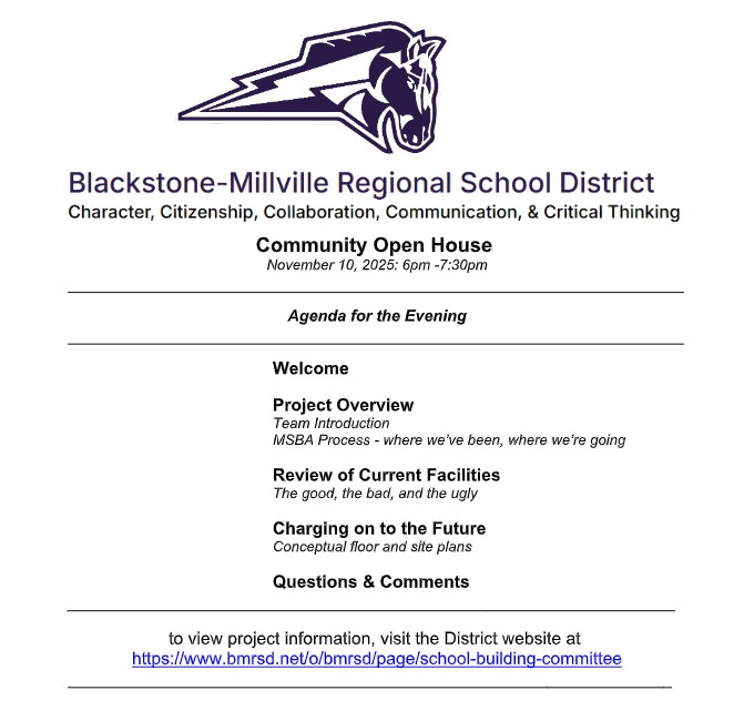 The BMR School Building Project Update continues to evolve as the district works closely with the Massachusetts School Building Authority (MSBA) to ensure the future of education in Blackstone and Millville is both financially responsible and educationally sound.