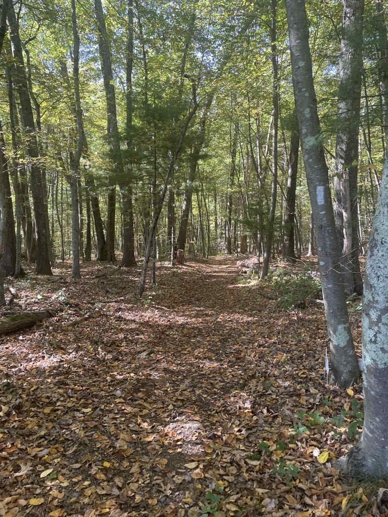 You’ll find the first basket just across from the Daniels Farmstead parking lot. After that, the trail takes you into the woods where markers on trees guide your way. Some holes are straightforward, while others weave through the trees, adding a little challenge—and a lot of fun.