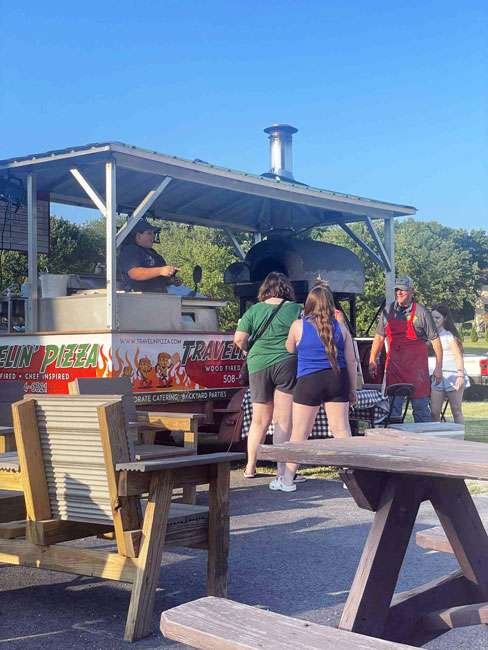 • 🍕 Rotating food trucks (like Travelin’ Pizza and Tom’s Chicken & Fries)