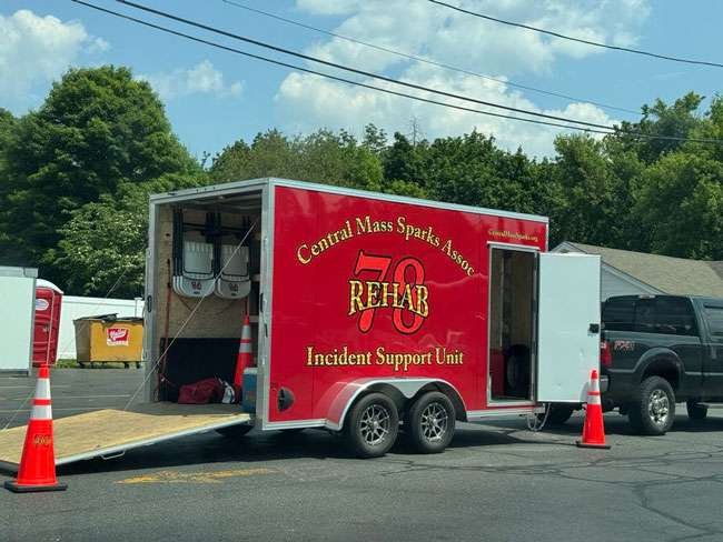 Hazmat teams responded Thursday afternoon to a boarding house on Main Street in Blackstone following a reported hazardous materials incident. Officials from the Massachusetts Department of Fire Services Hazmat Unit were seen at the scene, along with support units from the Central Mass Canteen and Mass Sparks Association.