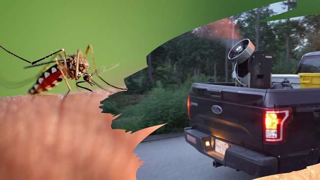 Spraying is scheduled for Monday evenings after sunset, depending on weather and mosquito activity.